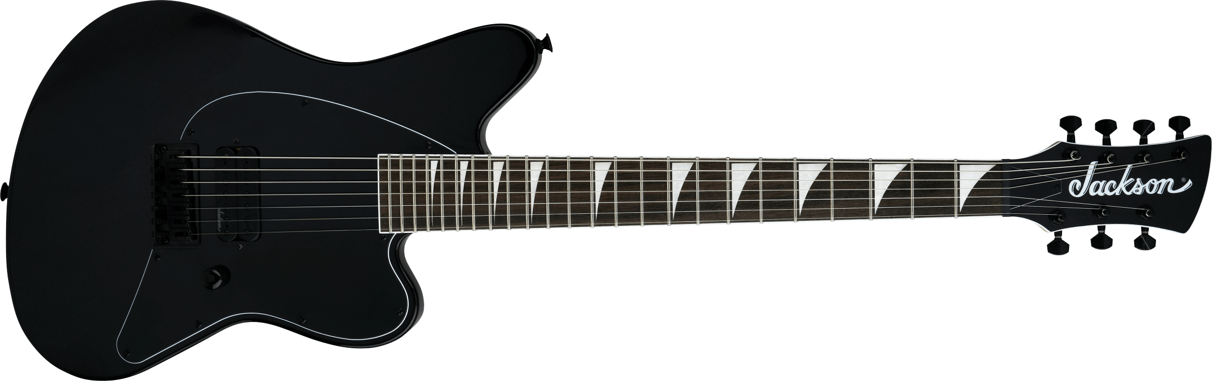 Drawing from Jackson's iconic shapes, the new X Series Surfcaster™ blends vintage appeal with thoroughly modern appointments for the ultimate modern metal machine. The sleek offset poplar body and bolt-on maple neck provide a rock-solid foundation, while the 12”-16” compound radius bound laurel fingerboard with pearloid sharkfins allows for easy chording and fret-out free soloing. 24 jumbo frets and Jackson's meticulously crafted neck heel provide unfettered access to the highest registers. Oozing with attitude, the Surfcaster comes loaded with a high-output Jackson bridge humbucker, ready to pump out the thick, saturated distortion tones that built the Jackson legacy. Simplicity reigns with a single volume control on this seven-string model. The Surfcaster also comes equipped with a Jackson's robust hardtail bridge to keep tuning stable and setup perfect. Jackson has been pushing the boundaries of metal guitar design for over 40 years. The new X Series Surfcaster answers the prayers of modern metalheads, continuing the evolution with a sleek new take on this classic metal machine. Step into the fire and unleash your riffs with the X Series Surfcaster from Jackson.