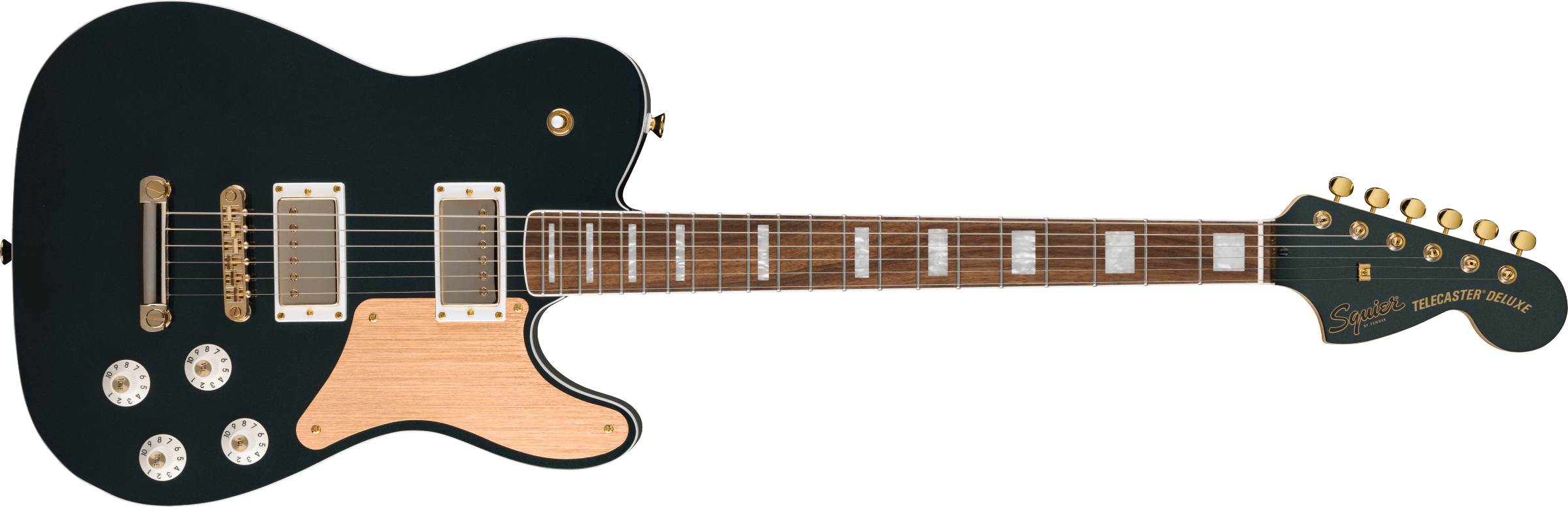 Making a comeback from its origins in the Fender® Parallel Universe collection, the Paranormal Limited Edition Troublemaker Telecaster® Deluxe is ready to make some noise, Squier® style. Featuring dual Fender-Designed alnico humbucking pickups with push/pull controls for coil split versatility, this Troublemaker lives up to its rowdy, yet refined sonic reputation. This stylish Tele® is full of swagger with its bound body and fingerboard, pearloid block inlays and matching painted headstock. Other player-friendly details include a fully adjustable bridge for superior setups, a slim and comfortable ”C“-shaped neck with a gloss finish for a slick yet confident feel, and vintage-style tuning machines for accurate and reliable tuning.