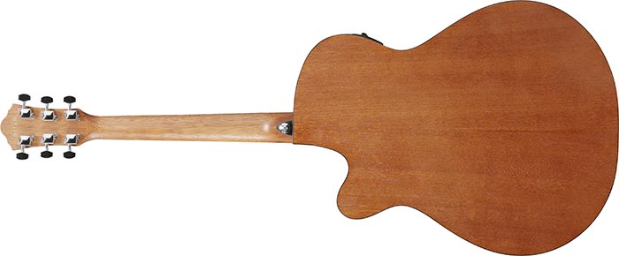 Meranti back and sides provide a warm and balanced tone.