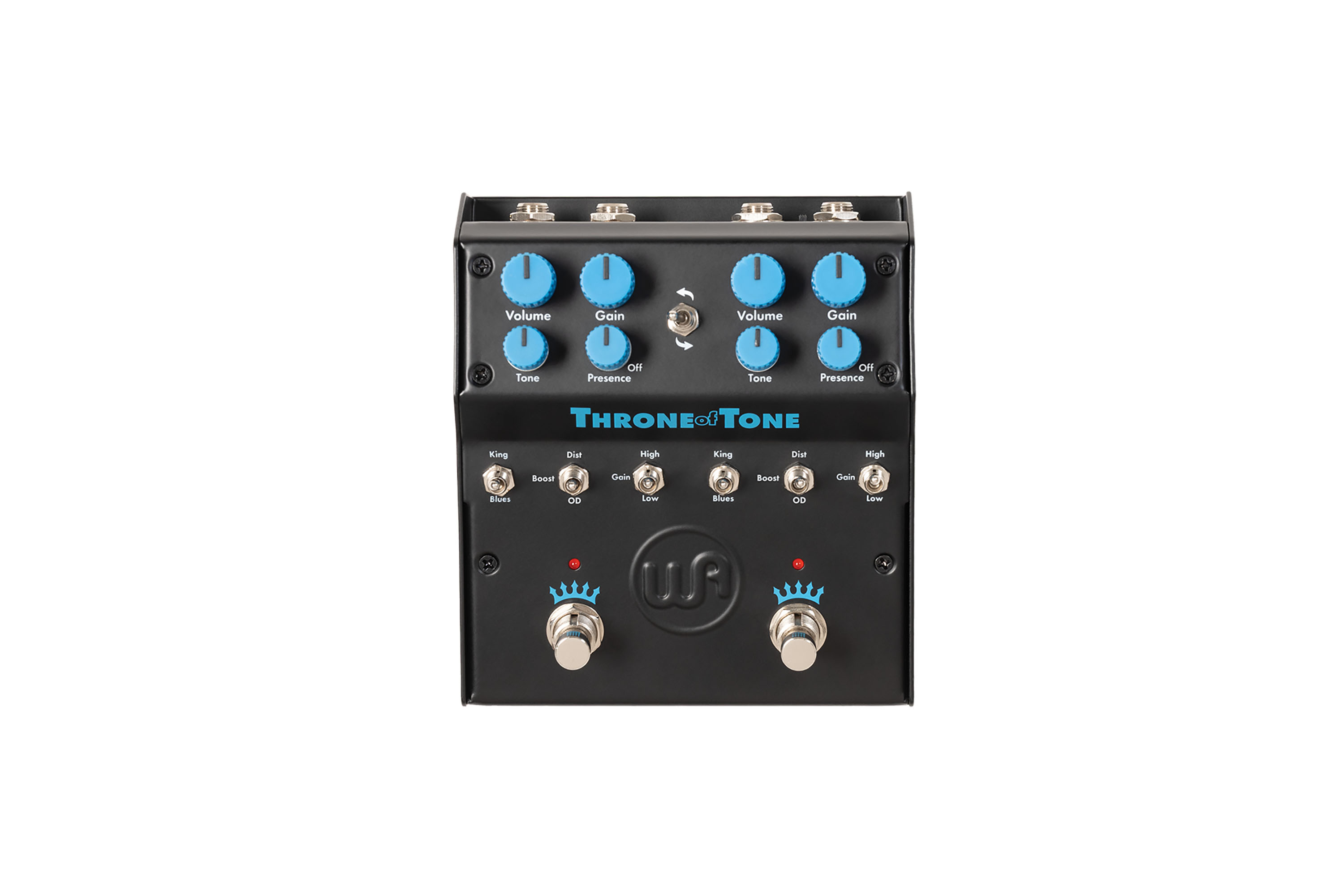 Throne Of Tone is all about unmatched control and timeless tone. First and foremost, the Throne Of Tone accurately delivers the unique character of both original pedals with boutique gain and drive modifications - on each side! The voicing selector switches between “Blues” (early classics) and “King” (boutique favorite). A gain selector adds the boutique high/low-gain mod, while the drive mode lets each side run as an OD, Distortion, or Boost. Unique to this pedal, each side includes a presence knob for shaping upper mids when tones get muddy. Global voltage doubling increases headroom, while the FX Order Swap instantly changes effect sequence. A top-mounted send/return jack allows inserting pedals or chains between the two sides.