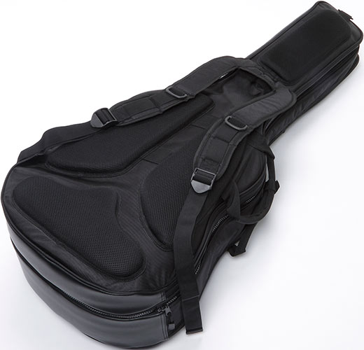 The thinner, electric guitar compartment features two detachable cushions at its base to keep the instrument stable and prevent movement while in the gig bag.
