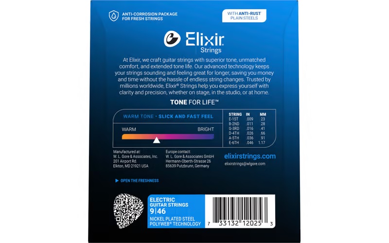 Elixir® Electric Nickel Plated Steel Strings with POLYWEB Coating deliver their own distinct warm tone together with extended tone life.